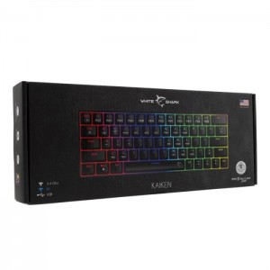 Clavier Gamer WHITE SHARK KAIKEN - Technologie de connectivité: Filaire - Interface: Type C - USB 2.0 (détachable), BT, 2,4 GHz - Norme du clavier: QWERTY - Nombre De Clés: 63/64 - Anti-ghosting complet - Éclairage RVB (22 effets différents) - Disposition des touches : Compacte - Matériel: Plastique - Durée de vie : plus de 50 millions de presses - Longueur du câble: 1.5 mètre - Dimensions: 291 x 102 x 40 mm - Couleur: Noir - Garantie: 1 an