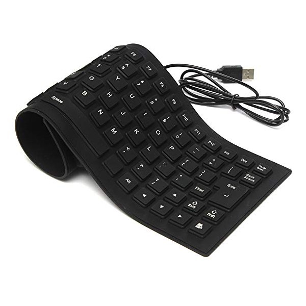 Clavier Flexible - Technologie de connectivité : Filaire - Interface : USB - Matériau en silicone de haute qualité - Lavable - Souple sans aucun bruit lors de la frappe - Couleur : Noir