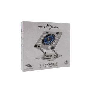 Refroidisseur WHITE SHARK ICE MONSTER - Pour Pc Portable jusqu'à 17.3" - Interface: 2 x USB 2.0 - 1 ventilateurs de 110 mm - Vitesse du ventilateur: 1200 tr/min - Réglage de l'angle - Tension de fonctionnement: 5 V - Matériau: plastique, aluminium - Dimensions ventilateur: 110 x 110 x 15 mm - Dimensions: 240 x 222 x 46 mm  - Poids: 960 gr - Couleur: Gris - Garantie: 1 an