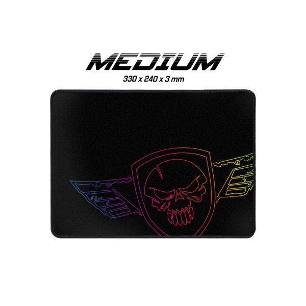 Tapis de souris Gamer SPIRIT OF GAMER DARKSKULL - Epaisseur: 3 mm - Taille: Medium - Matériel: Base en caoutchouc anti-dérapante - Revêtement ultra fin: idéal pour la rapidité, la fluidité et la précision - Bords cousus - Compatibilité: souris laser et optique - Dimensions:  33 x 24 cm - Couleur: Noir.